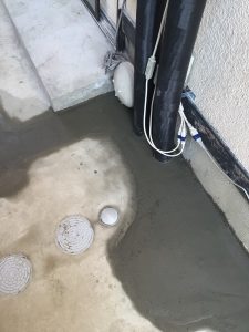 保温が出来たら土砂を埋め戻し、モルタルを敷いて引き直しは完了です。