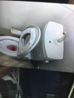 後日お伺いし、トイレを外してアキレスジョイントを交換をし、床シートを再度接着、トイレの位置変更を行い、水も流れは改善!