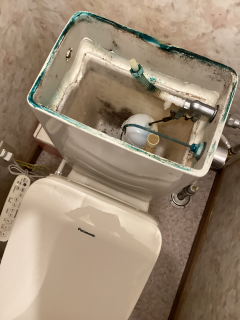 原因は、ご使用年数と芳香洗浄剤による内部部品の劣化と考えられましたのでお客様には①部品の交換②トイレ本体の交換をご提案致しました。