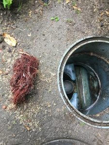 ご訪問して、点検させていただいたところ、排水トラップと蛇腹ホースに食べ残しや油が詰まり、流れをせき止めていました。