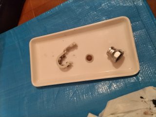 到着時開港一番、今日は見積もりだけでお願いしますとの事で、2階のトイレに案内され、タンク蓋をお客様が開けておられボールタップとフロートバルブを変えてほしいとのことです。