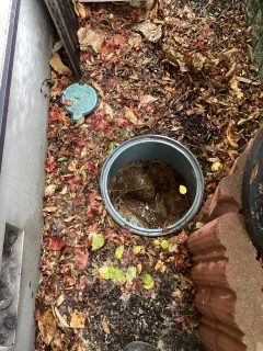 トイレの調査を行いましたが、トイレ内につまりは見当たらず、屋外の排水マスを確認。