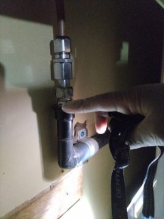 シンク下の背面パネルを開けたところ、給水管からポタポタと水漏れしていました。