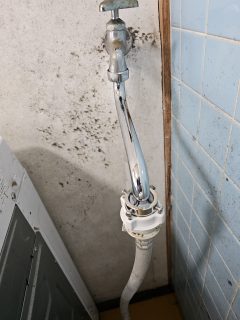 ご訪問し、様子を拝見すると使用年数20年の洗濯蛇口のスパウトが折れている状況です。