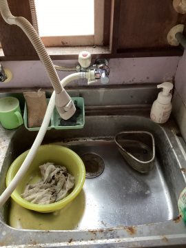 山口県長門市にある築年数50年の一戸建てにお住まいのお客様より、キッチン水漏れのご依頼を頂きご自宅に急行して参りました。