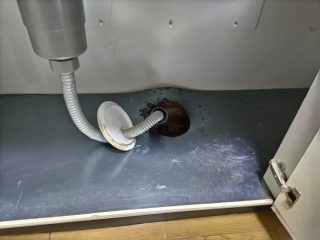 大阪市大正区にある築年数25年の一戸建てにお住いのお客様よりキッチン詰まりの件でお問い合わせを承りました。ありがとうございます。今日、シンクの床が濡れているのに気づき、また1階天井からも水漏れしているとの事でご自宅に直行しました。